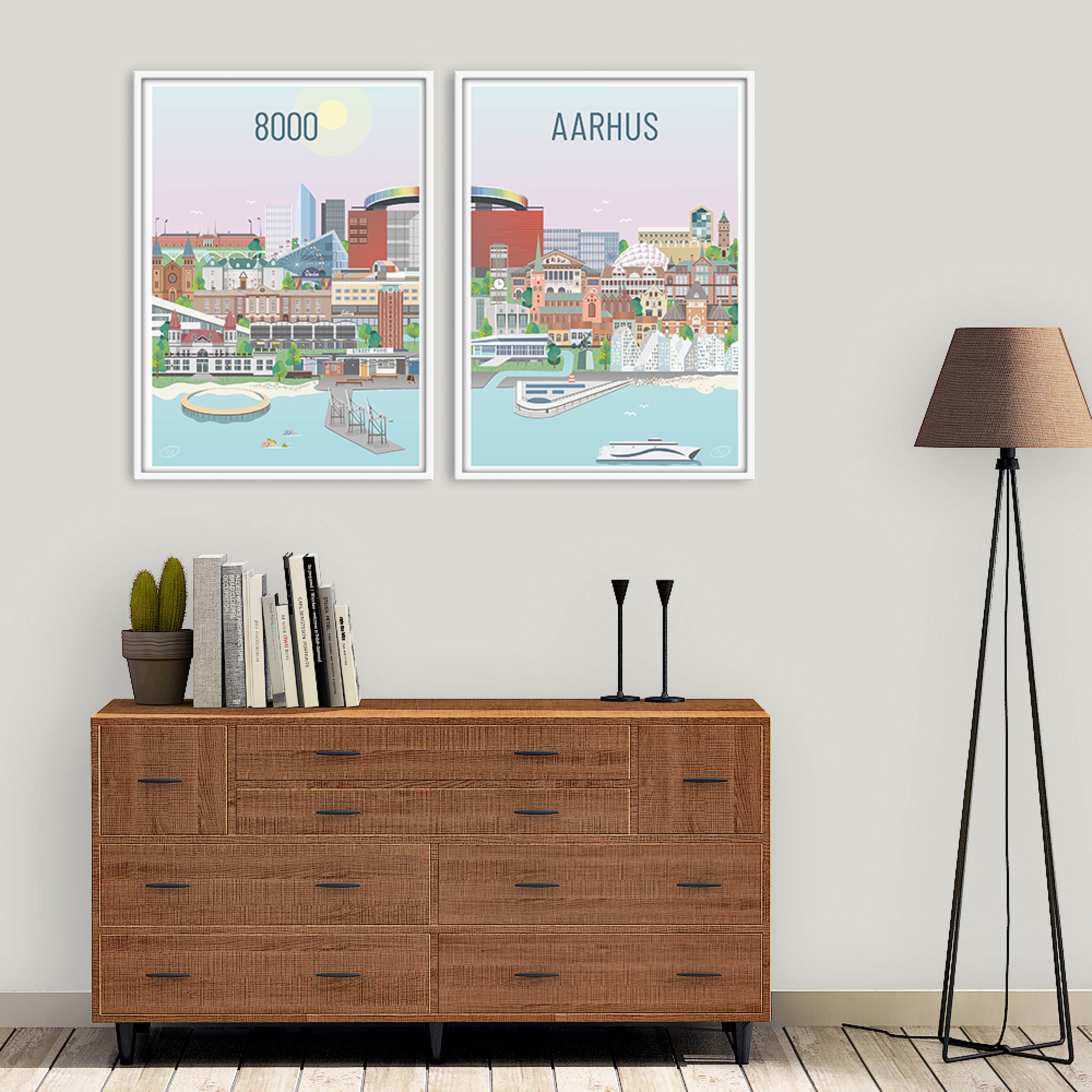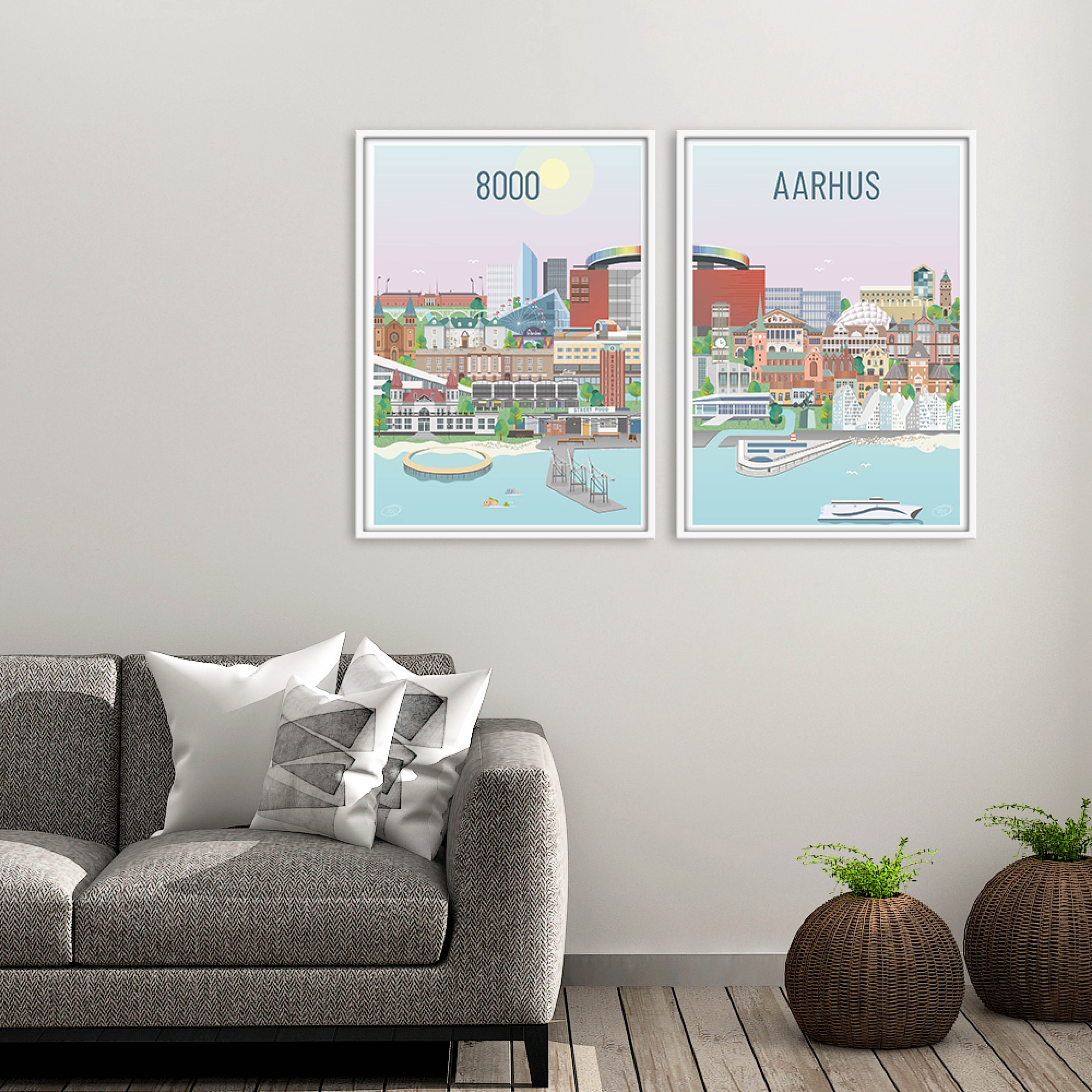 Her finder du Danmarks største udvalg af byplakater. Her har du et bud på en rigtig fin Aarhus plakat med maser af lækre detaljer. Plakaten er gennemarbejdet i samarbejde med lokale. På plakaten finder du bl.a. Marselisborg Slot, Ceres Park Arena, Tivoli Friheden og ARoS. Vilakula har formået at fange byens stemning i masser af skønne farver, som er en god kontrast til de sort/hvide skandinaviske hjem.