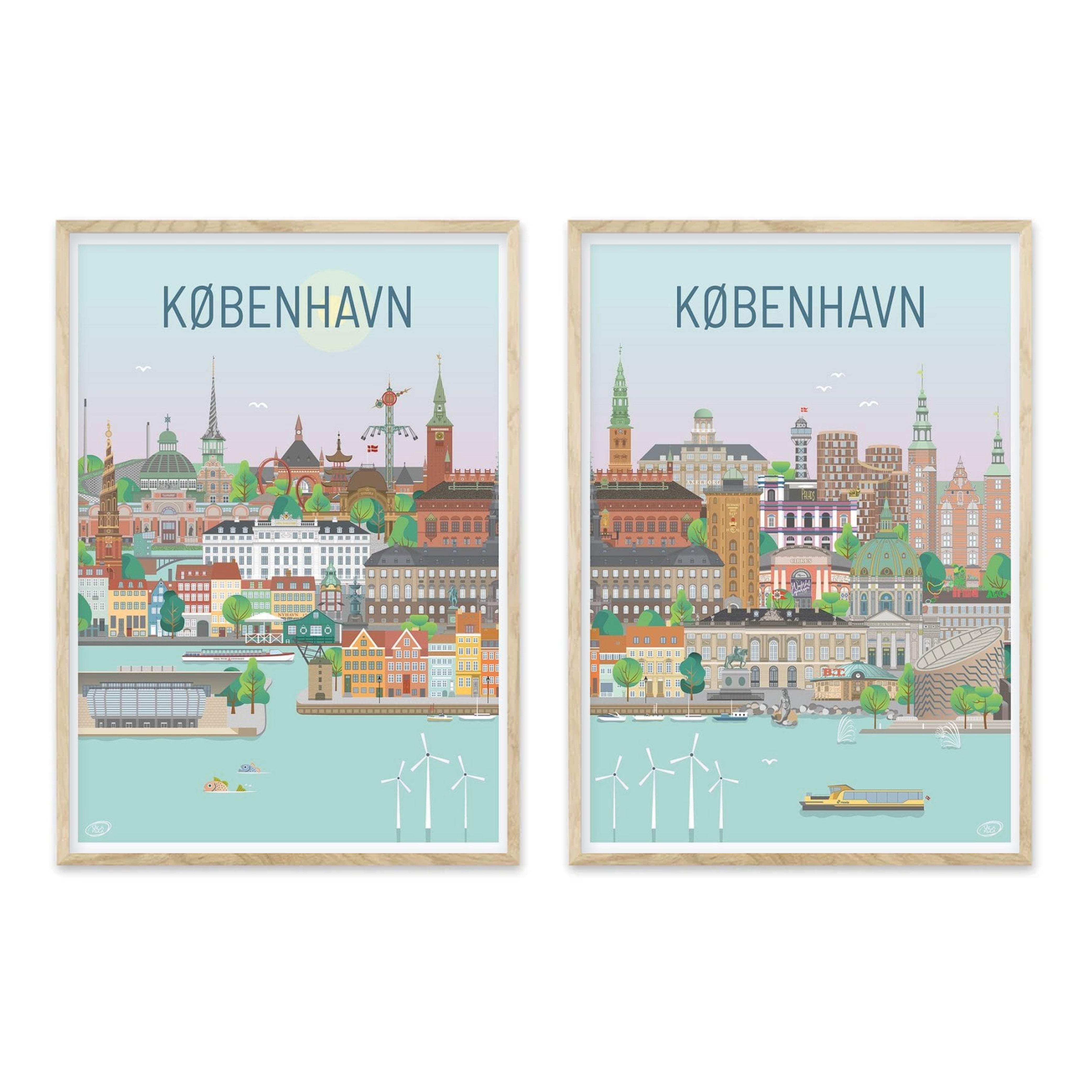 Et dekorativt og moderne København plakat sæt, der kombinerer dansk design, byplakat og stilren boligindretning i ét samlet udtryk.